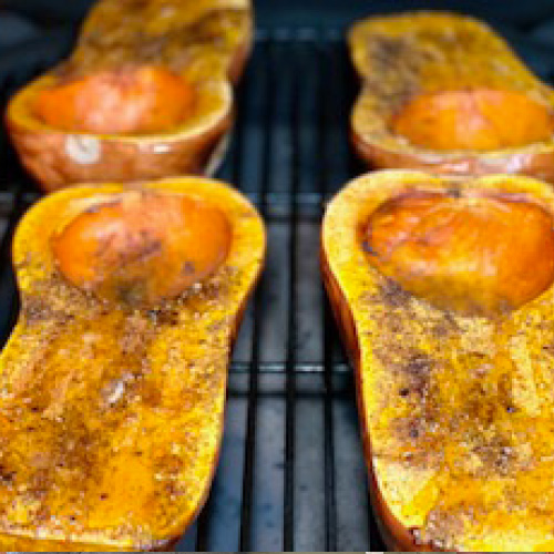 You could roast the squash in the oven, but you will get more flavor by roasting the butternut squash on the grill. I set up my Big Green Egg for indirect grilling. You can set-up a charcoal or a gas grill for indirect grill. Indirect grilling means there is no flame under the food. The charcoal adds a subtle smoke flavor to the squash. If you want to boost the smoke flavor add wood chips or chunks to the charcoal or make a smoker pack for your gas grill.