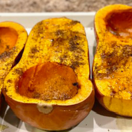 Did you know butternut squash is technically a fruit? But it is used culinarily as a versatile vegetable that can be roasted, sauteed, pureed for soup, or mashed and used in casseroles, breads, pies, and even in pasta. Butternut squash is one of my favorite sides for Thanksgiving. But it does not have to be just for Thanksgiving. It goes great with pork tenderloin, roasted chicken, and is a delicious filling for ravioli. One of the clinic’s recent questions of the week was “what is your favorite side for Thanksgiving.” I think stuffing won, but butternut squash was a close second. Here is how I like to make butternut squash.